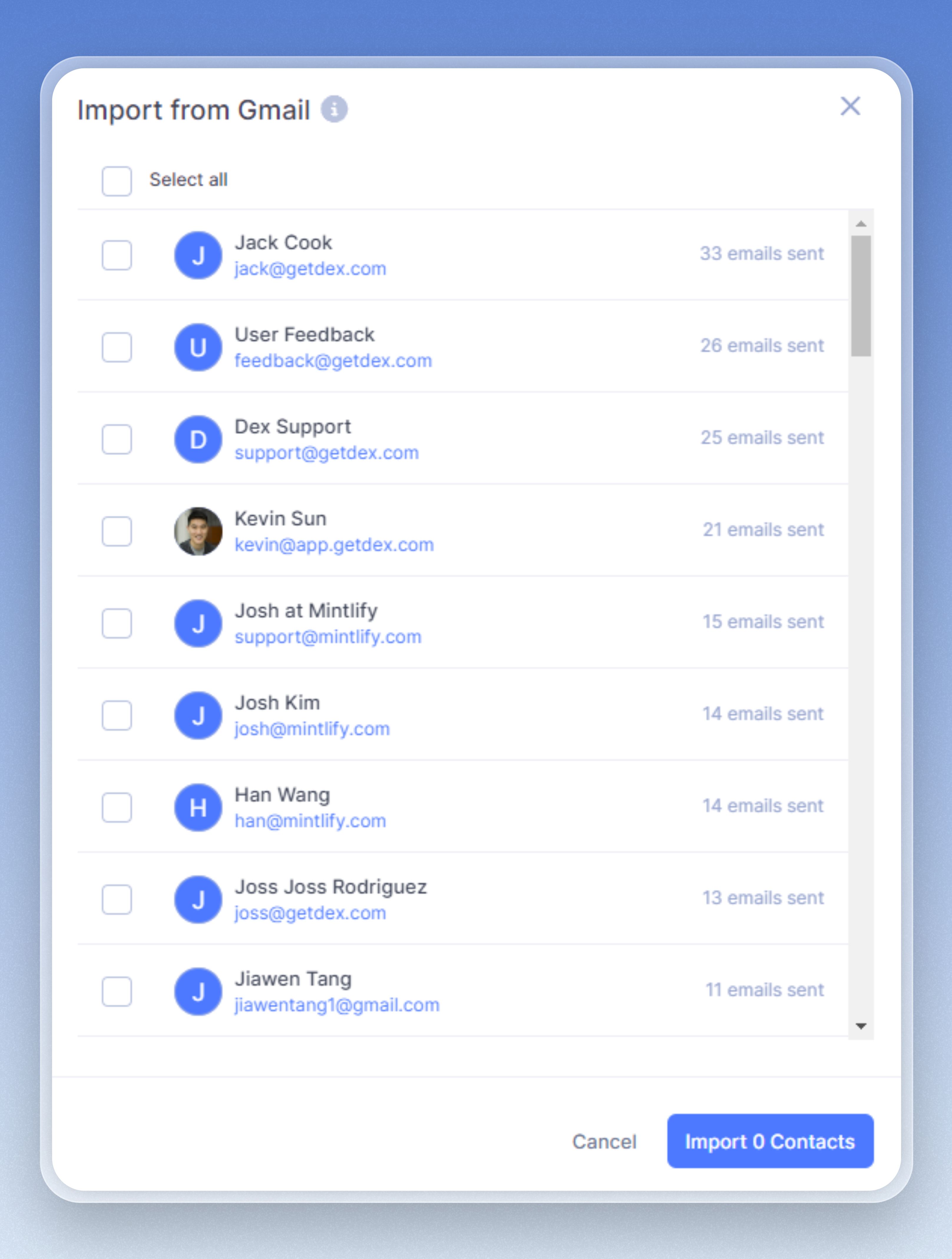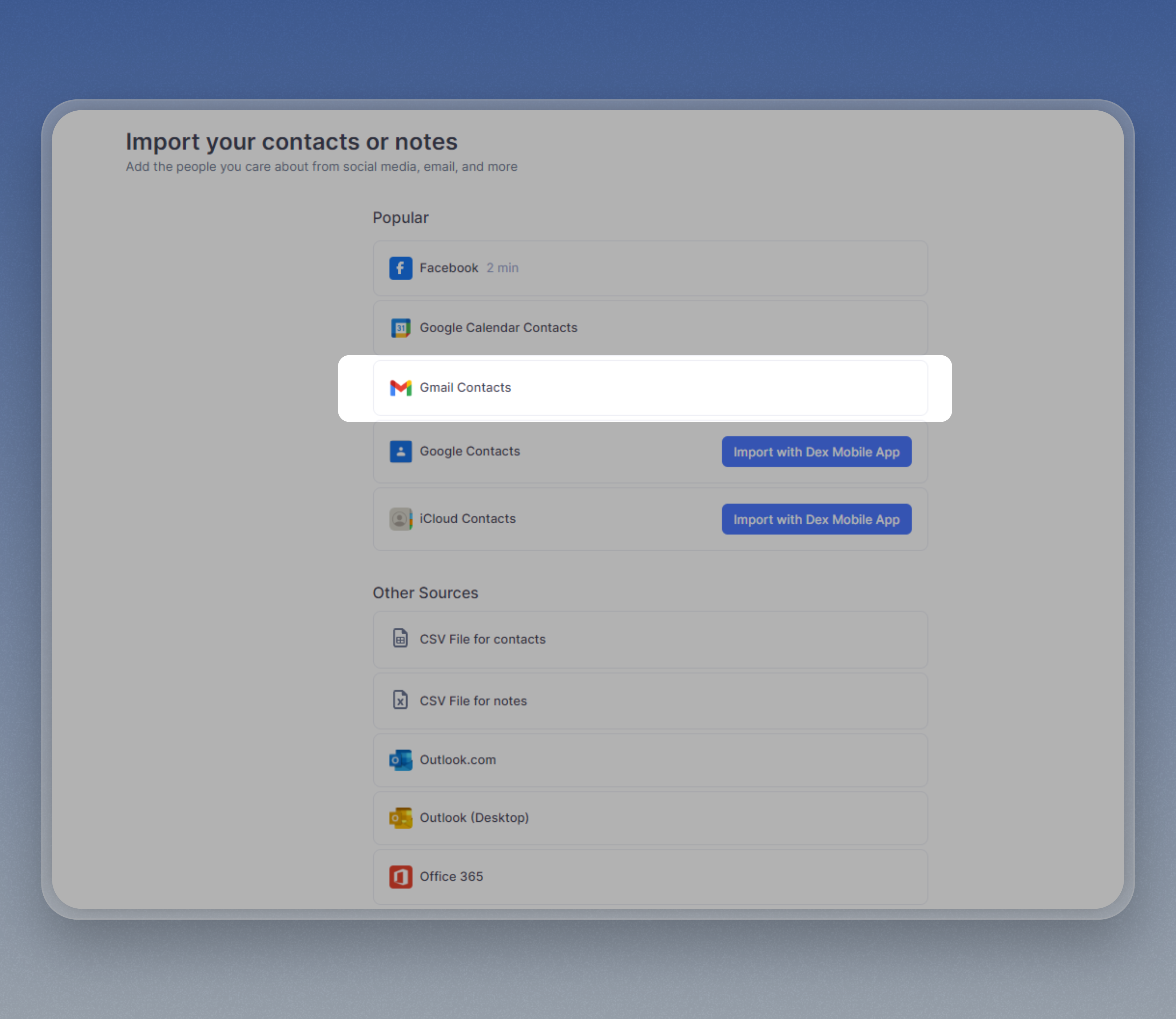 If you haven’t, Dex will prompt you to connect your Gmail account.