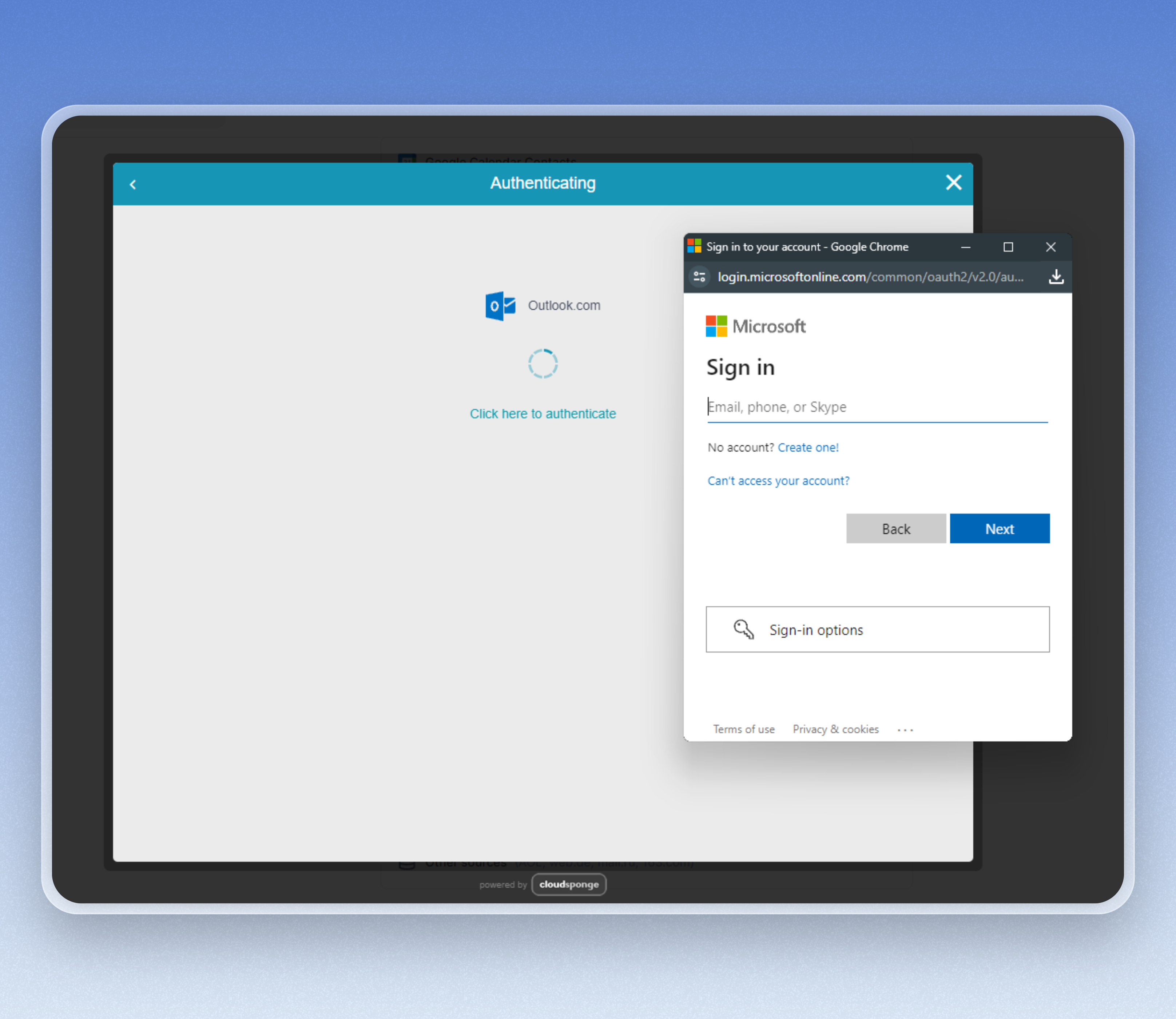 On the popup window, log in to your Outlook account and allow access to Dex.