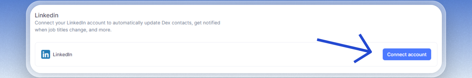 On the Sync & Integrations page, you’ll see a ‘Connect Account’ button under the ‘LinkedIn’ section.