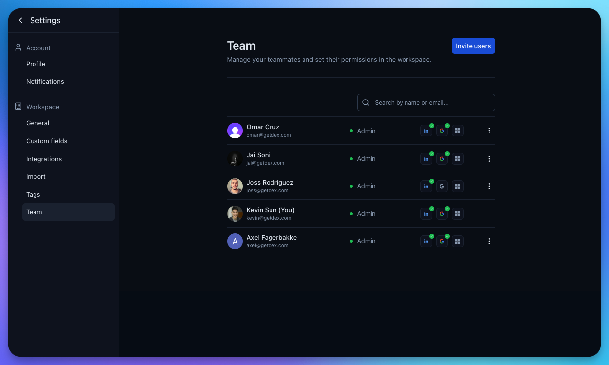 Rolodex brings all of your team’s connections into one place. Like Dex, it showcases your interaction history with a contact, but it also displays your team members’ interactions with that contact. Rolodex provides an overview of companies in your shared network, allowing all team members to see which companies you’re connected to, who you know there, and the interaction history.