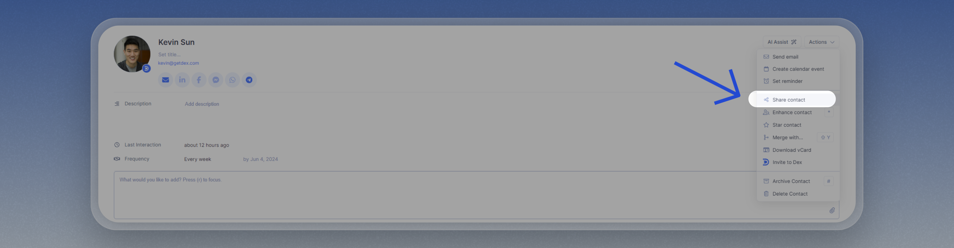 - Once shared, the recipient will receive an email about the shared contact and an option to create a Dex account (for non-Dex users).