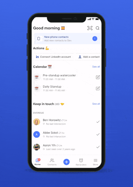 Skip to main contentWhether from a networking event or your decades-old rolodex, business cards still are a common way to exchange contact information. Dex makes it seamless to work with (and digitize) business cards.